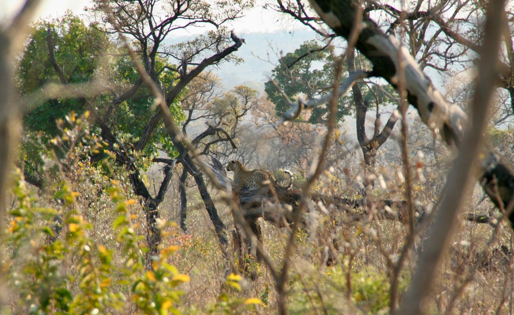More animal noises last night! Wake up call person said to be a little careful because there were hyenas and possibly a lion in the area! Yikes. That got my attention. This was our last day in Kruger and we still hadn’t seen a lion or a rhino. But Lucky said he was feeling lucky. 🙂 We headed out again at 7 a.m. and within fifteen minutes we were rushing to see another leopard! As I’ve said, they are not that common to see so it was a treat. She was beautiful. Hanging out on a fallen tree for about five minutes before she decided she was tired of us.