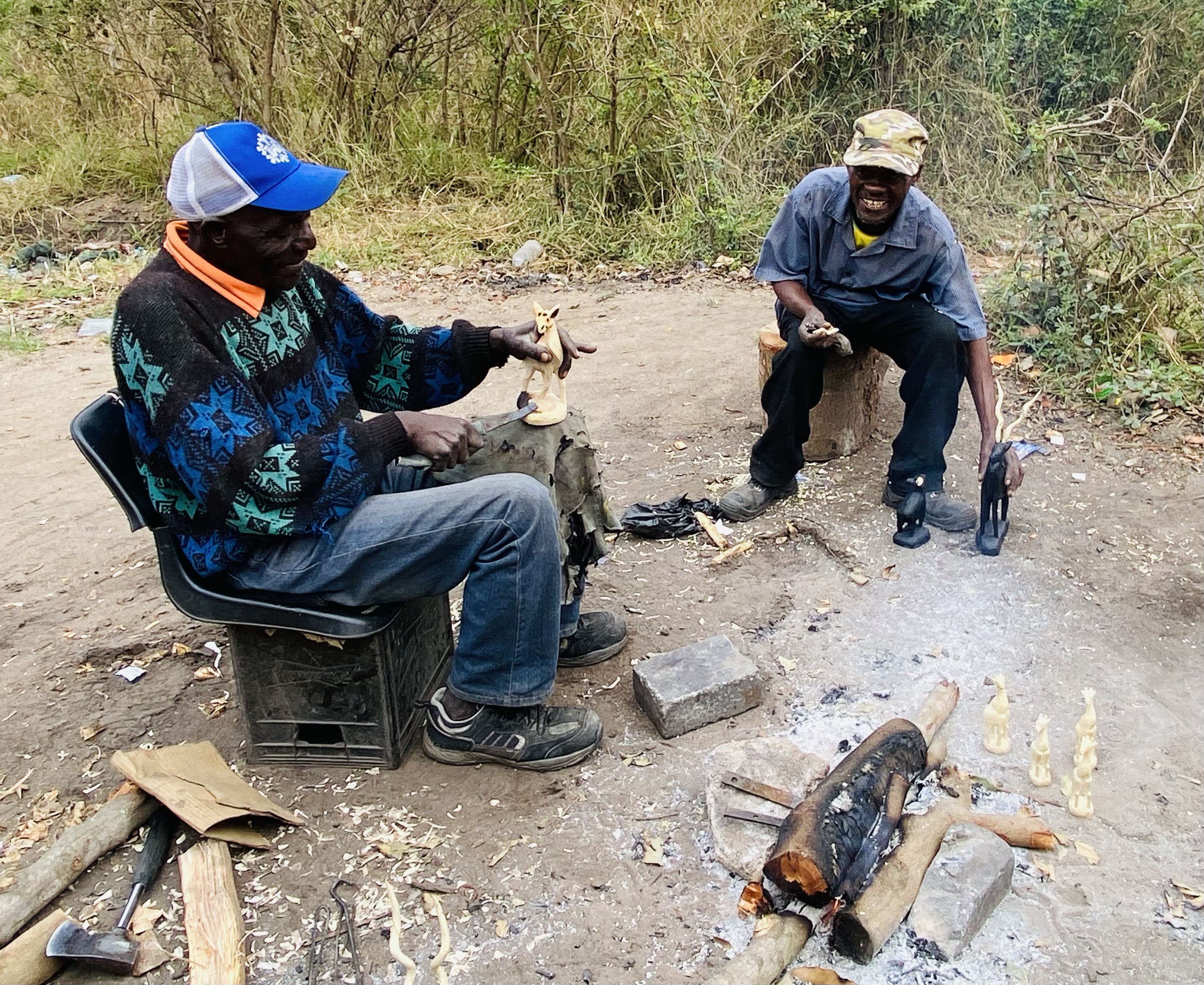 We flew into Nespruit from Johannesburg and stopped at a road side market on the way to Kruger Park. I bought some delicious macadamia nuts and a handmade carved wooden statue of a kudu. And I must add that I NEVER saw that again – the kudu statue nor someone selling the nuts. Some people didn’t buy anything because it was our first stop but later regretted it. So if you like something and especially if it’s a road side event, BUY IT. Don’t just think that you will see something like it again. Here are the two men who make the wooden animals. They were so happy to talk to us about their craft.