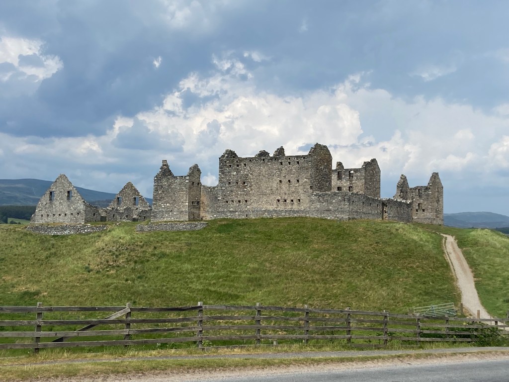 We headed north to see some sights before our whiskey tour in the afternoon. First stop was the Ruthven Barracks which are the best preserved of the four barracks built in 1719 after the 1715 Jacobite rising. Set on an old castle mound, the complex comprises two large three-storey blocks occupying two sides of the enclosure, each with two rooms per floor. The barracks and enclosing walls were built with loopholes for musket firing, and bastion towers were built at opposite corners. It was destroyed by Jacobites following their retreat after the Battle of Culloden in 1746.