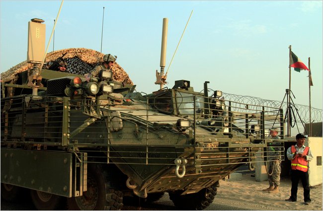 And the good news? Seven years and five months after the U.S.-led invasion, the last American combat brigade heads home. I loved this line for the AP “A line of heavily armored American military vehicles, their headlights twinkling in the pre-dawn desert, lumbered past the barbed wire and metal gates marking the border between Iraq and Kuwait early Thursday and rolled into history.”