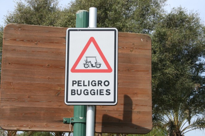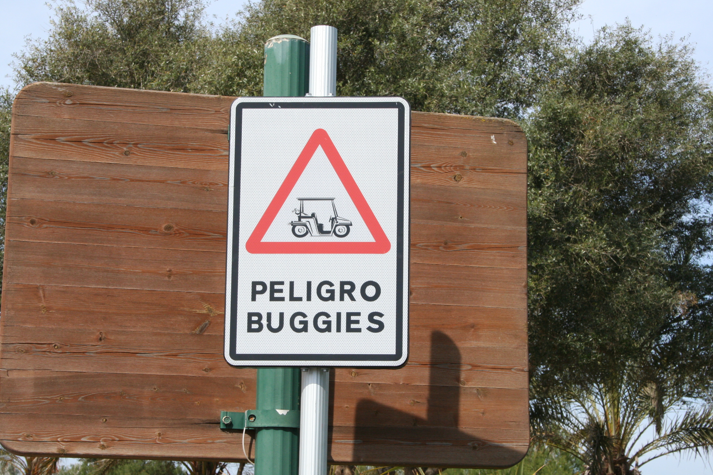 The own jokes are the best. I see this sign at the hotel where I use the gym and it makes me laugh every time. Careful! Dangerous, man-eating buggies around! Walk at your own risk.