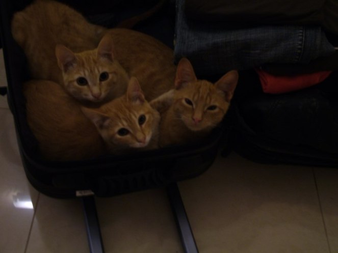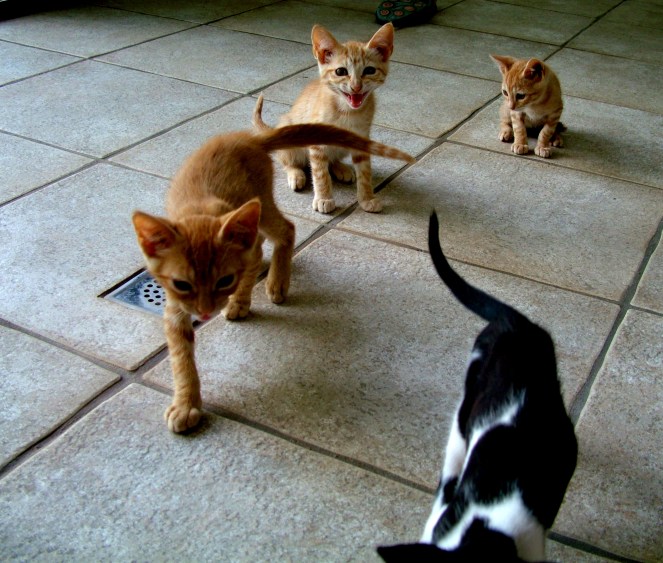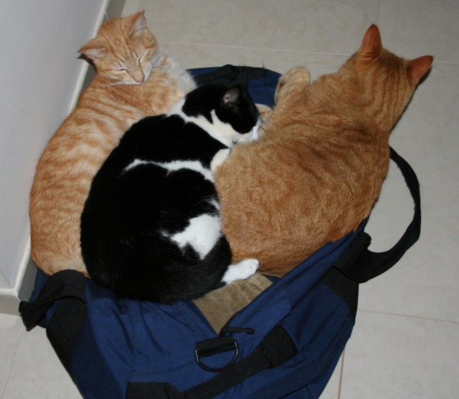 And never in my life have I had a cat. Actually I was VERY allergic to cats. But once we were blessed with those kitties, I have never had a reaction to cats ever again. Along the years we have gained two more cats, LD (which stands for Little Dude, but she is now the fattest cat ever) and Eva (the terrorista). Thankfully none of the others have FIV – which makes me think Growler contracted FIV from a cat bite he got a few years ago.