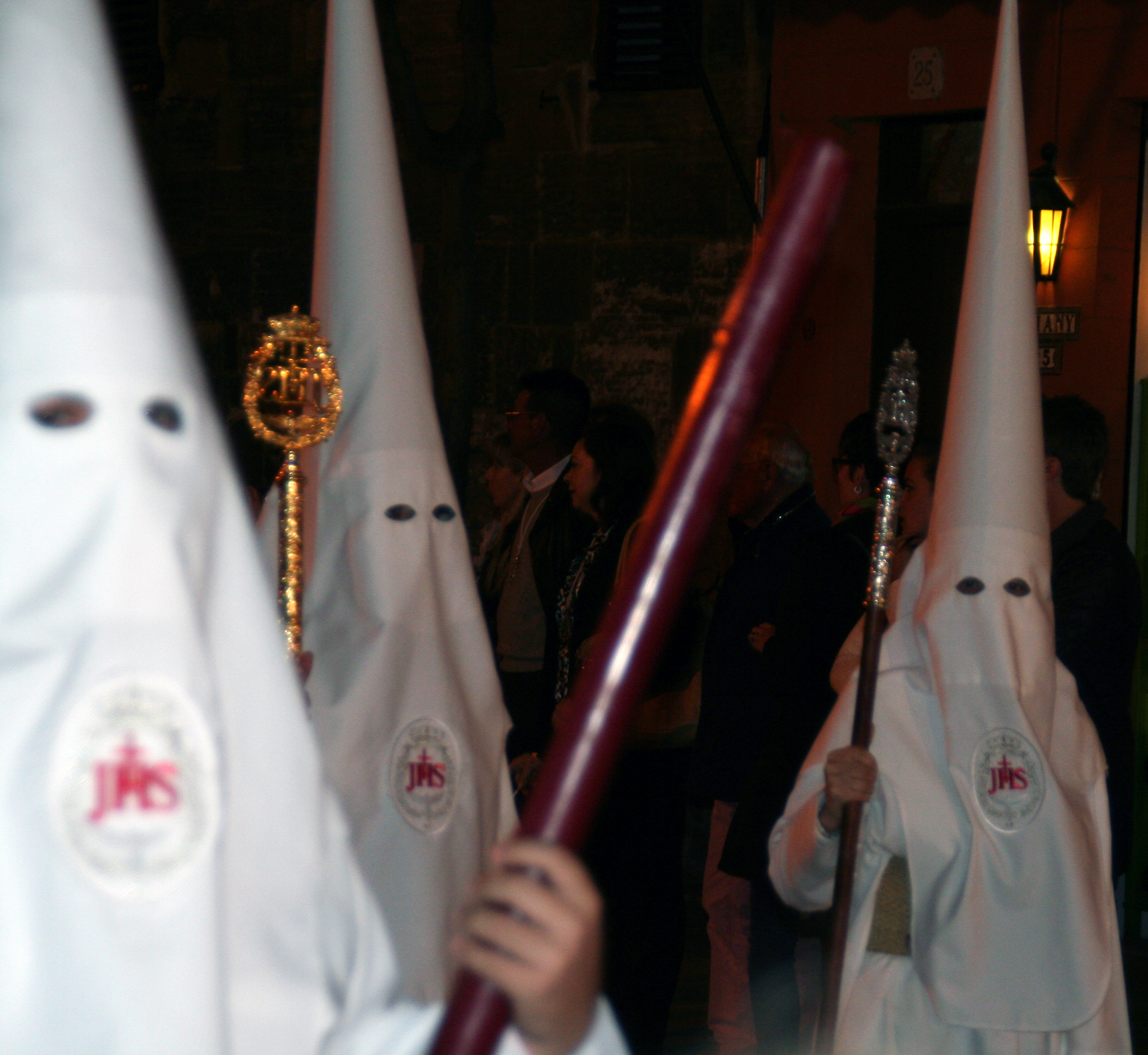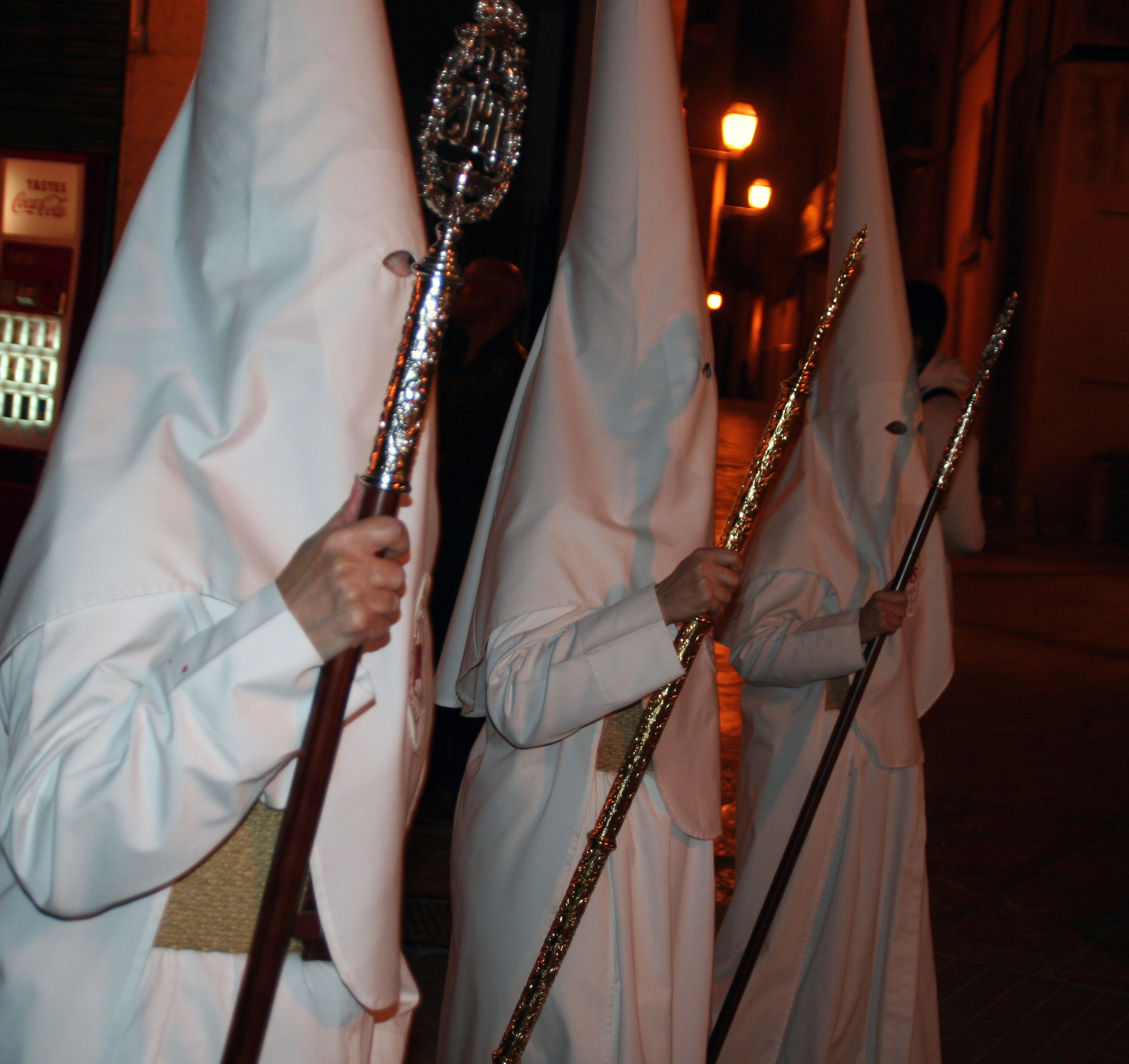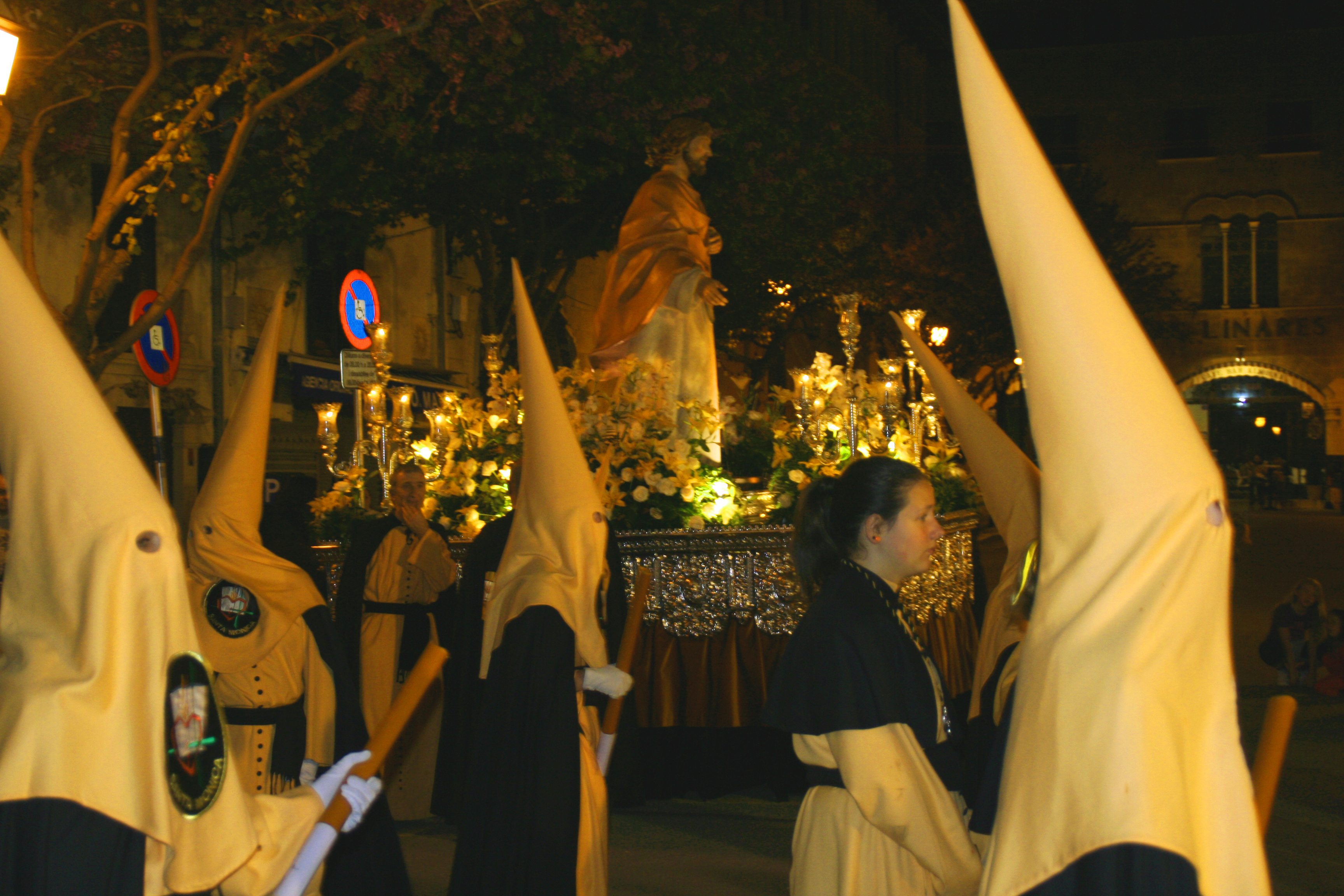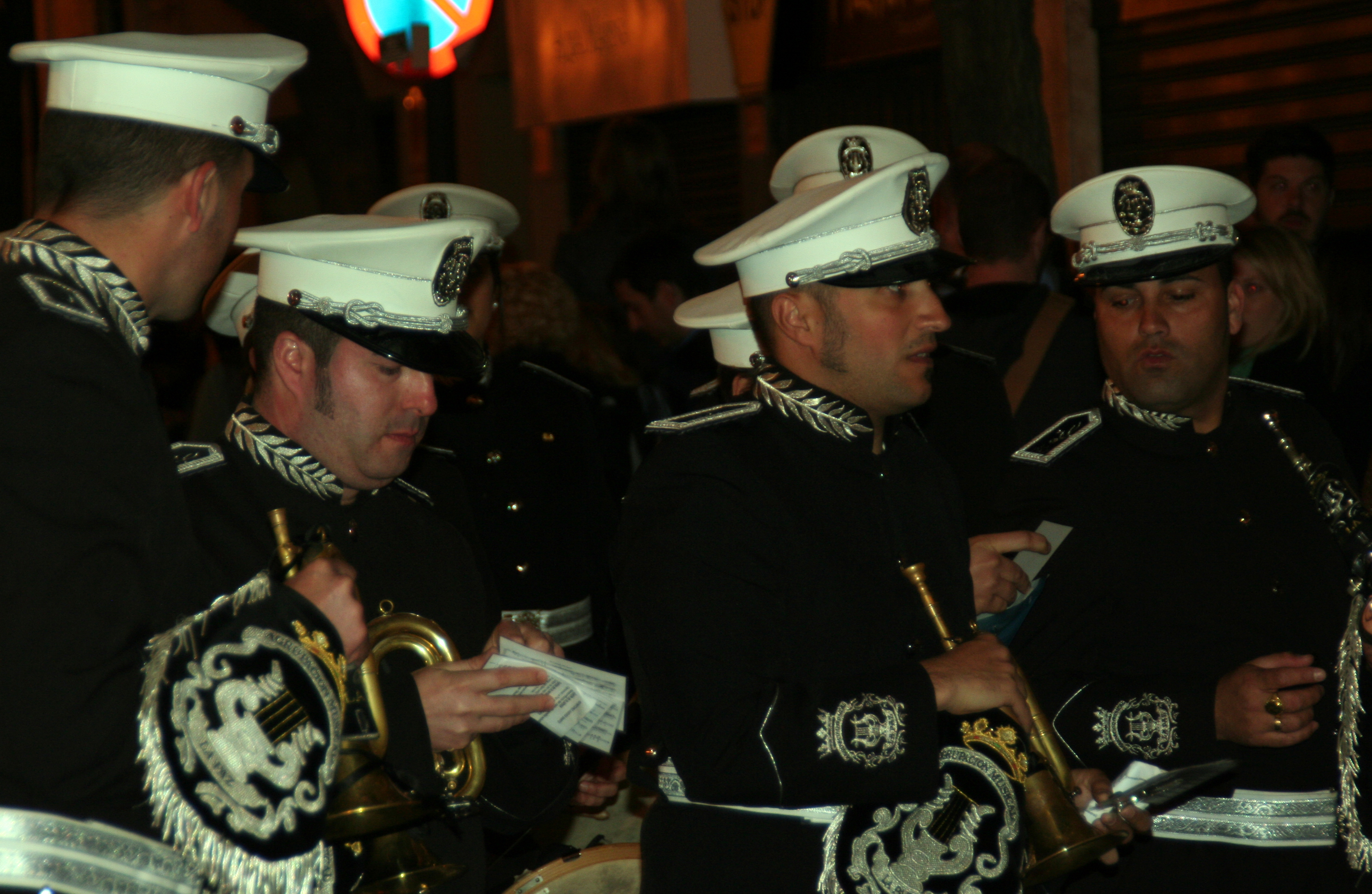 The other common feature is that every brotherhood carries magnificent “Pasos” or floats with sculptures that depict different scenes from the gospels related to the Passion of Christ or the Sorrows of Virgin Mary. Many of these floats are art pieces created by Spanish artists such as Gregorio Fernandez, Juan de Mesa, Martínez Montañés or Mariano Benlliure. Brotherhoods have owned and preserved these “pasos” for centuries in some cases. Usually, the “pasos” are accompanied by Marching bands performing “Marchas procesionales” a specific type of compositions, devoted to the images and fraternities.