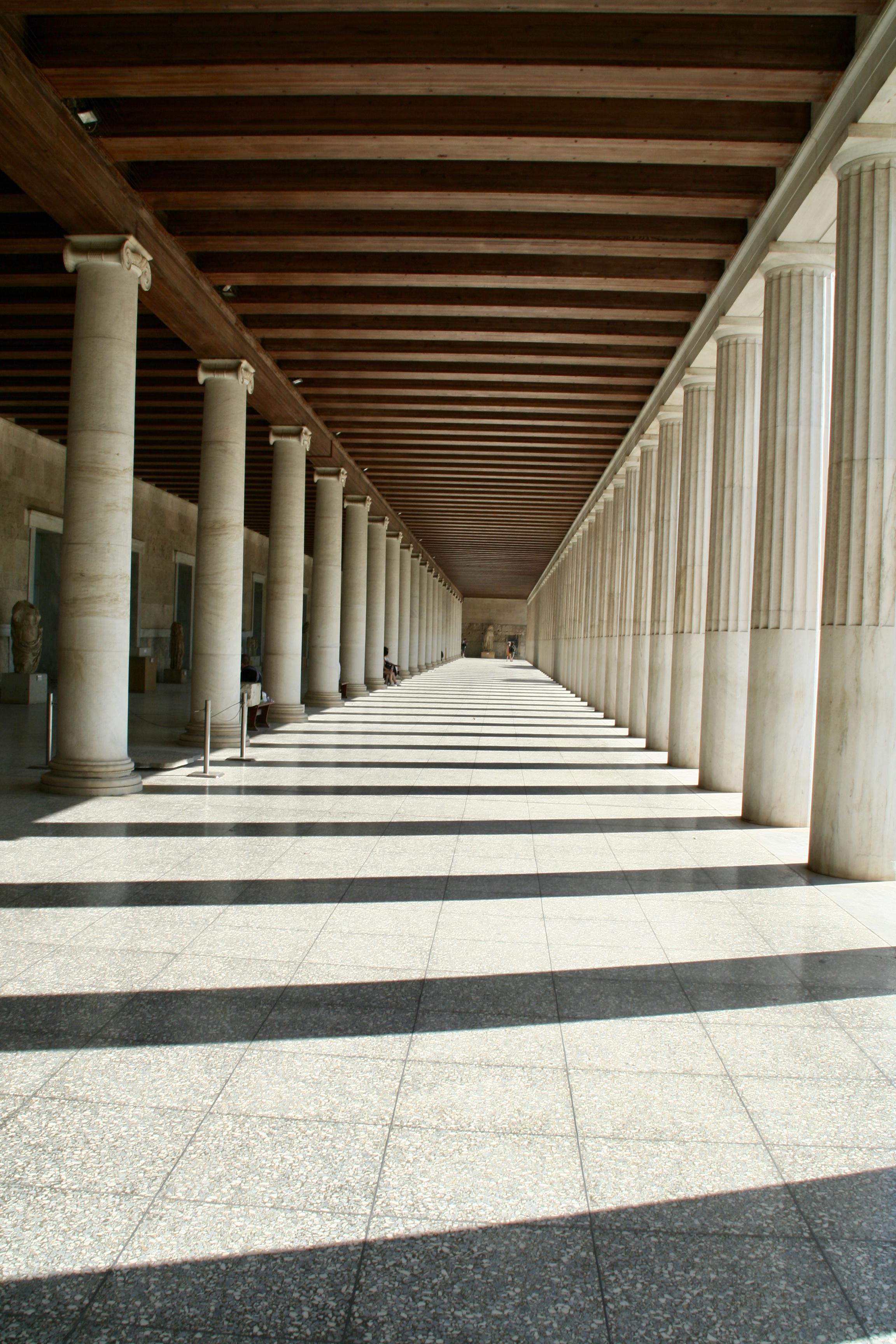 Nowadays, it a peaceful place with shady trees, paths and cats among the ruins. We checked out the Byzantine Church of the Holy Apostles and the Stoa of Attalos. The stoa was another place to meet but also an ancient version of a mall, it had 42 shop spaces on the two levels. It was destroyed in 267 AD by invading Herulians. Its restoration took place between 1953 – 1956 by the American School of Classical Studies with the financial support of John D. Rockefeller, Jr.